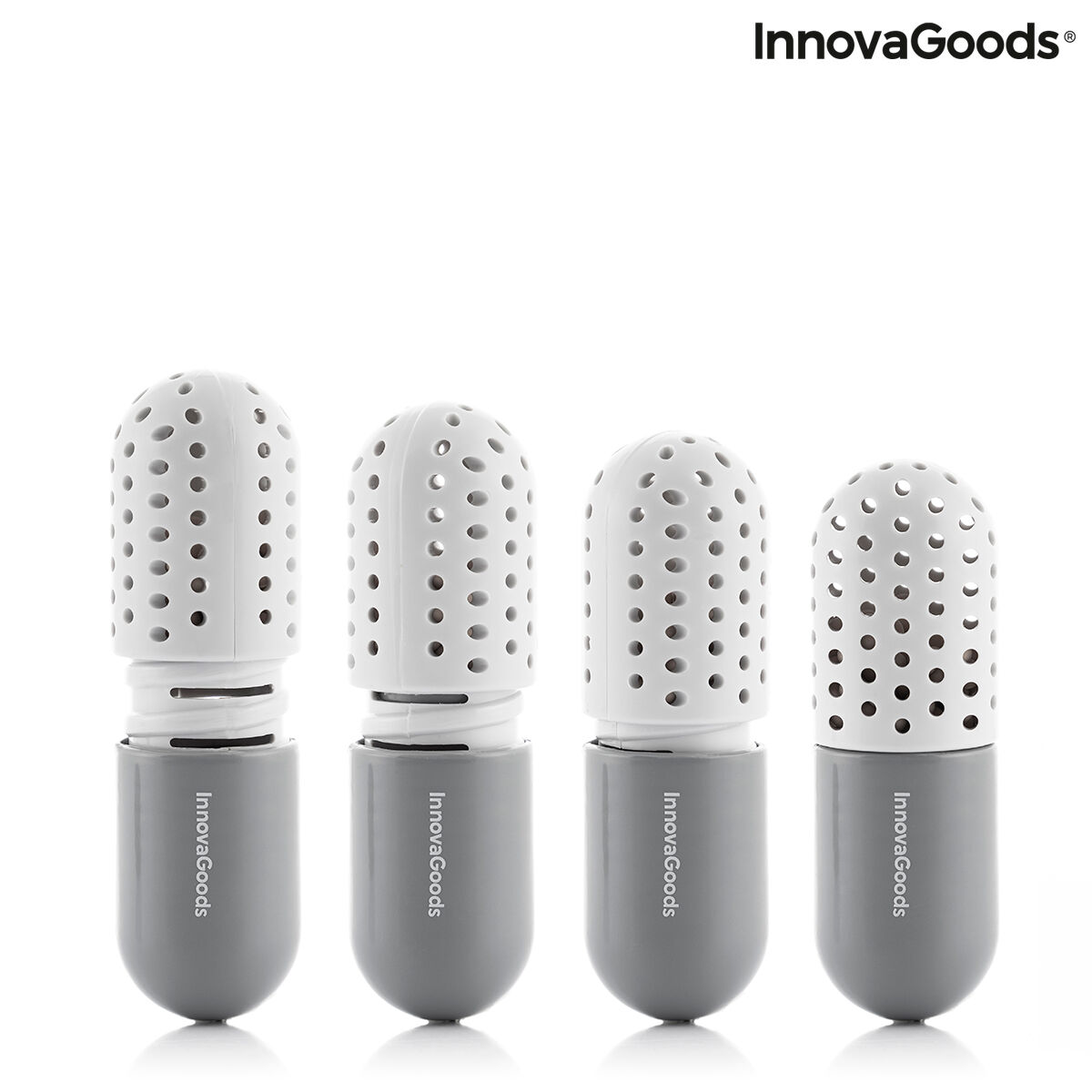 As cápsulasdesodorizantes para calçado Froes InnovaGoods absorvem a humidade e libertamuma agradável fragrância para higienizar o calçado e eliminar os maus odores. Umaforma simples e eficaz de neutralizar o mau odor que os pés deixam no calçadodepois do seu uso. Estas cápsulasdesodorizantes também proporcionam um aroma de limpeza e frescura em armários,gavetas, sacos, malas, etc., mantendo o vestuário sem humidade ou maus odores.Além disso, podem ser selecionados até 3 níveis de intensidade, são adequadas paratodo o tipo de calçado e não prejudicam a saúde nem o meio ambiente.